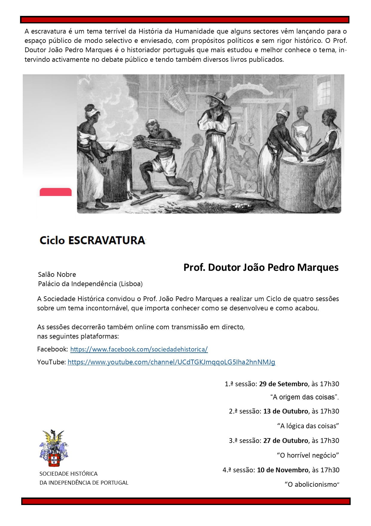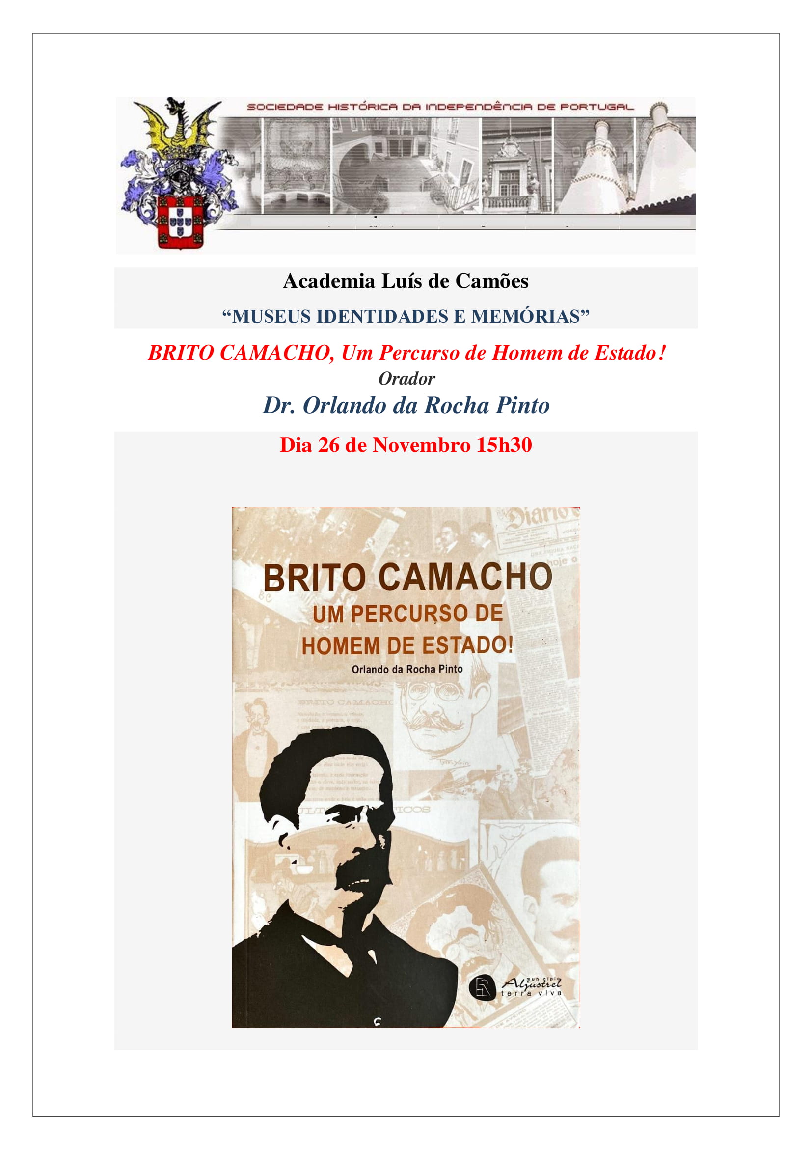 A Sociedade Histórica da Independência de Portugal e a Academia Luís de Camões, convidam V.Exa a assistir à palestra integrada…