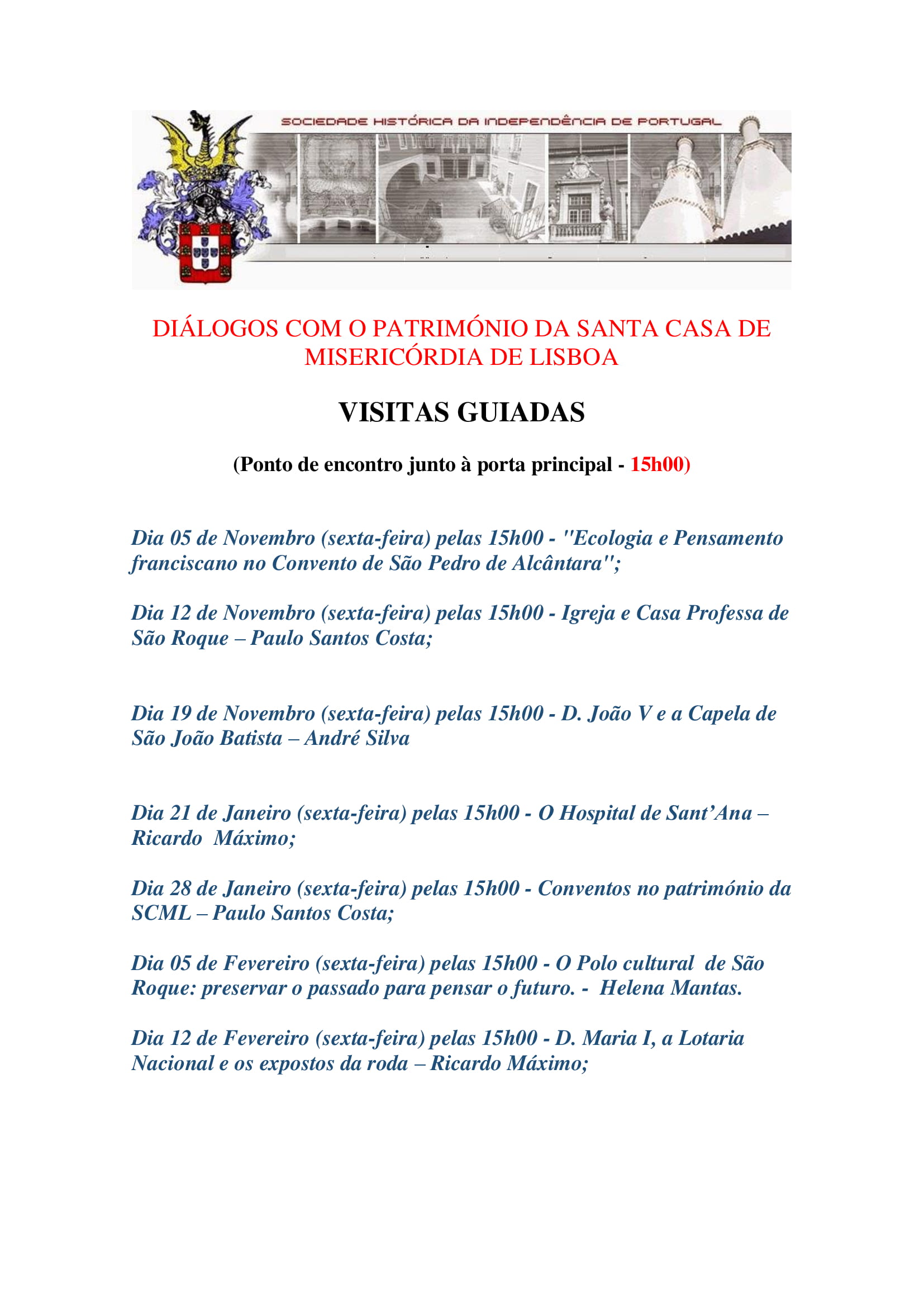 12-11-2021 | 15:00 a 12-11-2021 else: ?> 12-11-2021 | 15:00 | Ponto de encontro: porta principal da Igreja de S. Roque