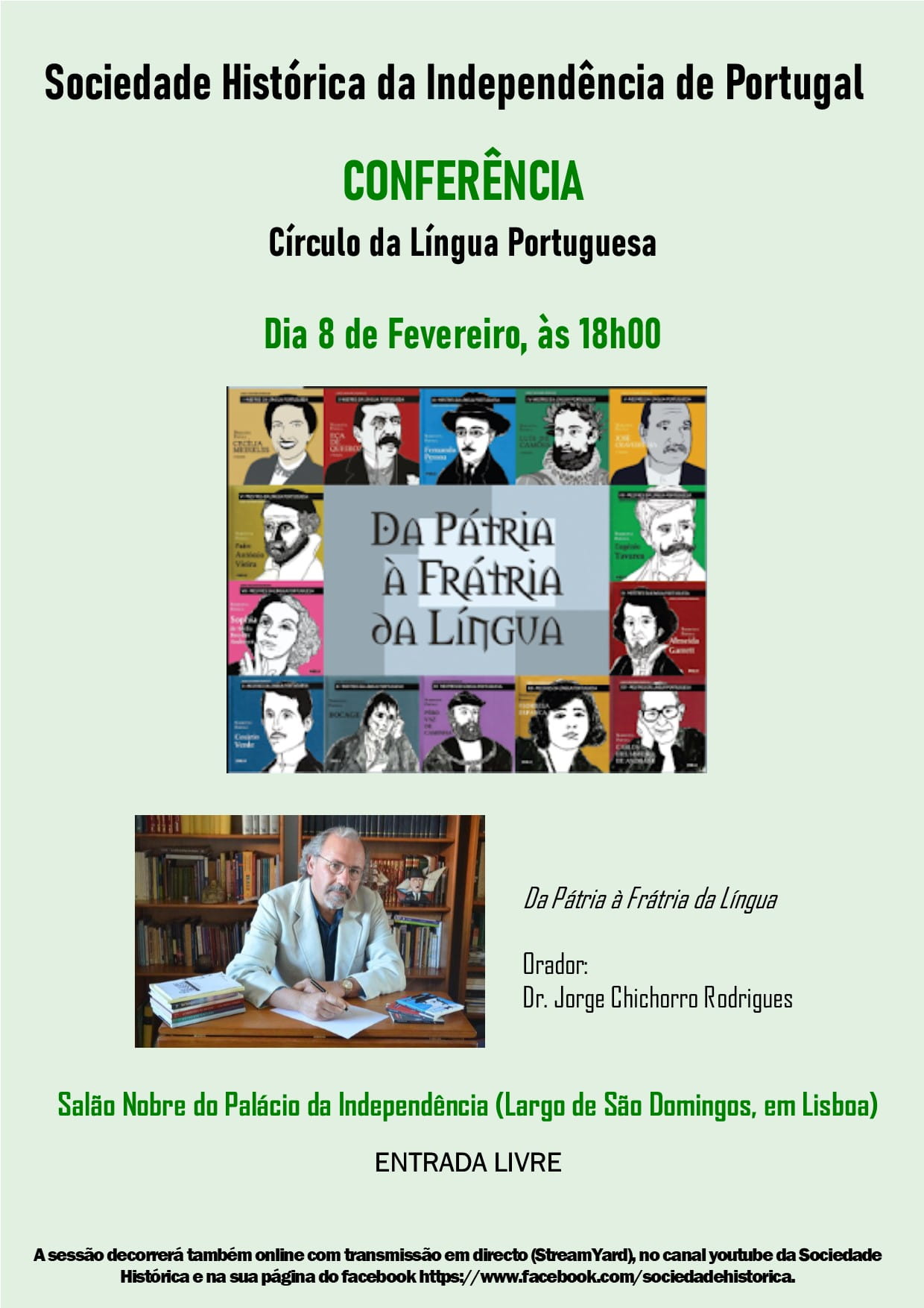 O Círculo da Língua Portuguesa da Sociedade Histórica convida V.Exa para a conferência DA PÁTRIA À FRÁTRIA DA LÍNGUA* Será…