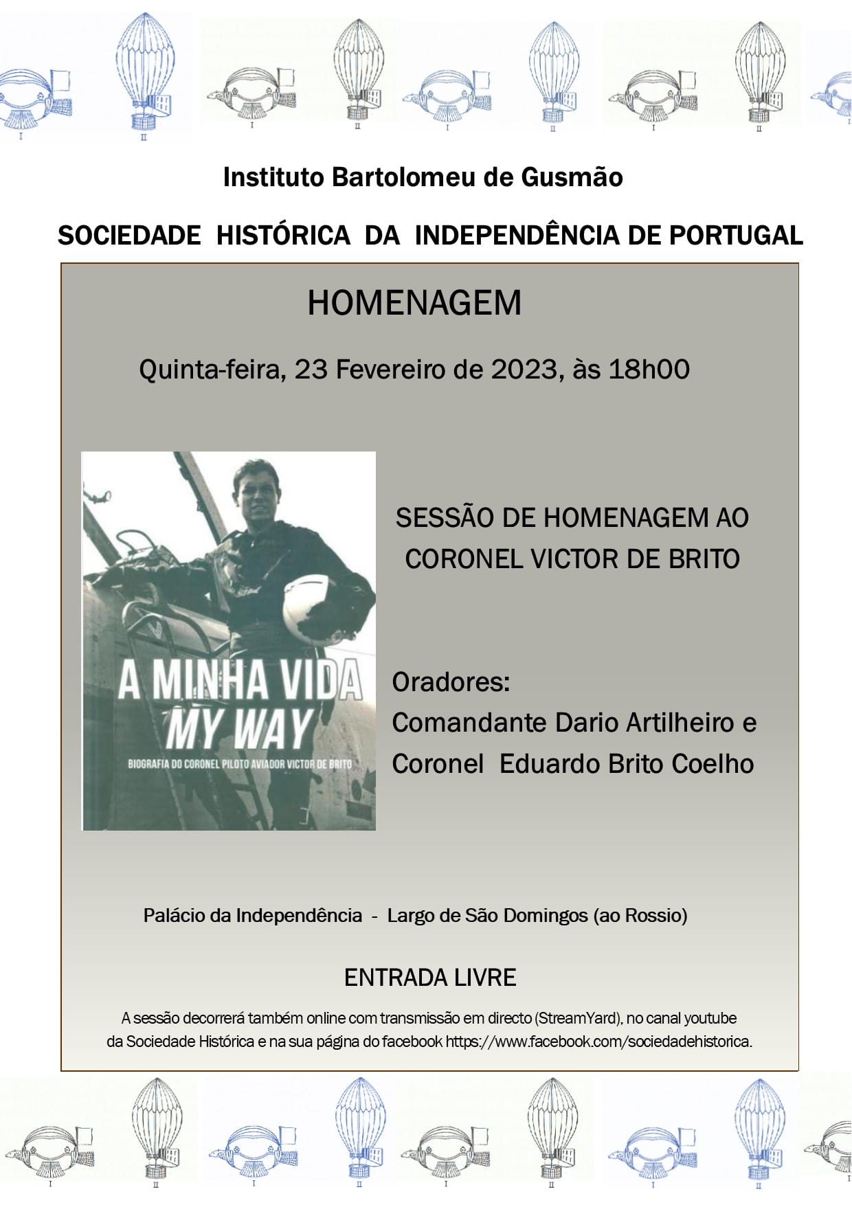 O INSTITUTO BARTOLOMEU DE GUSMÃO convida para a sessão de homenagem ao Coronel Victor de Brito Serão oradores o Comandante…