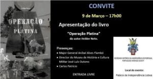 A Sociedade Histórica da Independência de Portugal convida V.Exa para a apresentação do livro intitulado “Operação Platina” escrito por Hélder Cabrita Neto, um algarvio que integrou uma tropa de elite, e que aborda diversas facetas da guerra colonial, especialmente em Angola.