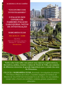 ACADEMIA LUÍS DE CAMÕES-“ENCONTRO COM INVESTIGADORES” O PALÁCIO DOS CONDES DE FARROBO/PALÁCIO LARANJEIRAS: NOTAS DE INVESTIGAÇÃO
