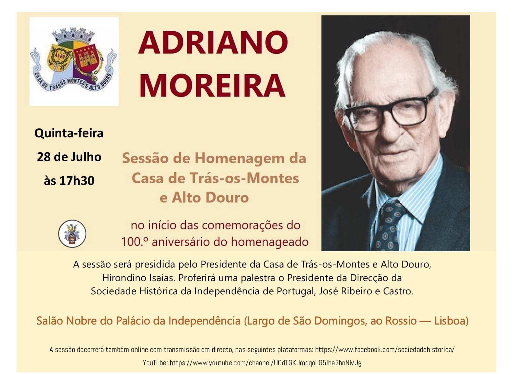 Sessão de Homenagem da Casa de Trás-os-Montes e Alto Douro no centenário do nascimento de Adriano Moreira. A sessão decorrerá…