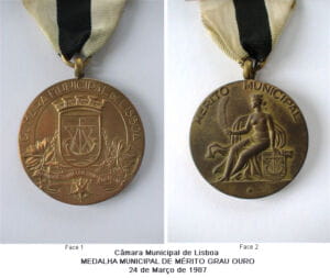 MEDALHA MUNICIPAL DE MÉRITO, GRAU OURO, DO MUNICÍPIO DE LISBOA – 1987/03/24